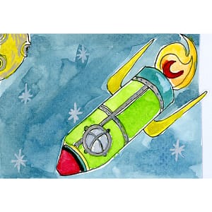 'n Tag-kaartjie en toutjie vir 'n spesiale geleentheid. Klim aan boord – ons gaan ruimte toe! Hierdie kleurvolle vuu...